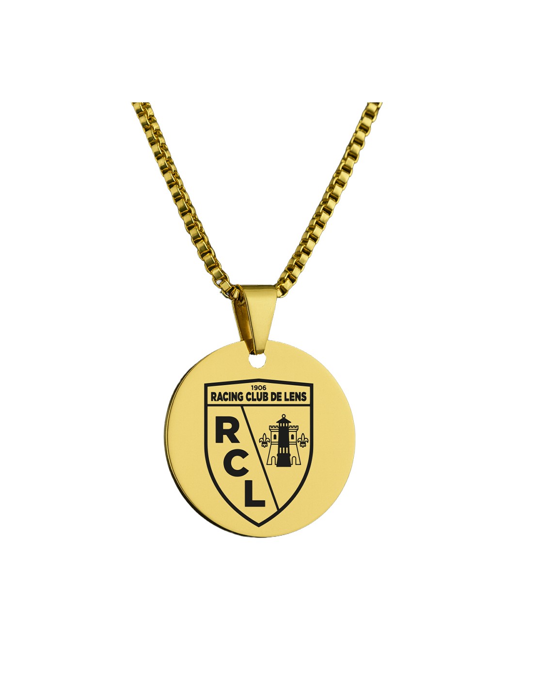 Pendentif rond RC Lens doré – Blason officiel du Club