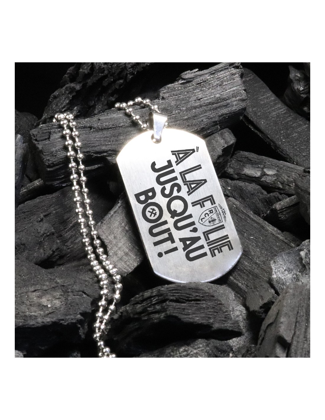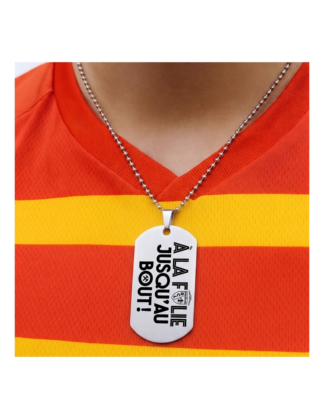 BIJOUTERIE RC LENSCe pendentif célèbre l’élan incroyable du Racing Club de Lens à l’approche de la finale de la Coupe de France, avec un message fort qui résonne chez tous les supporters : “À la folie jusqu’au bout !”.